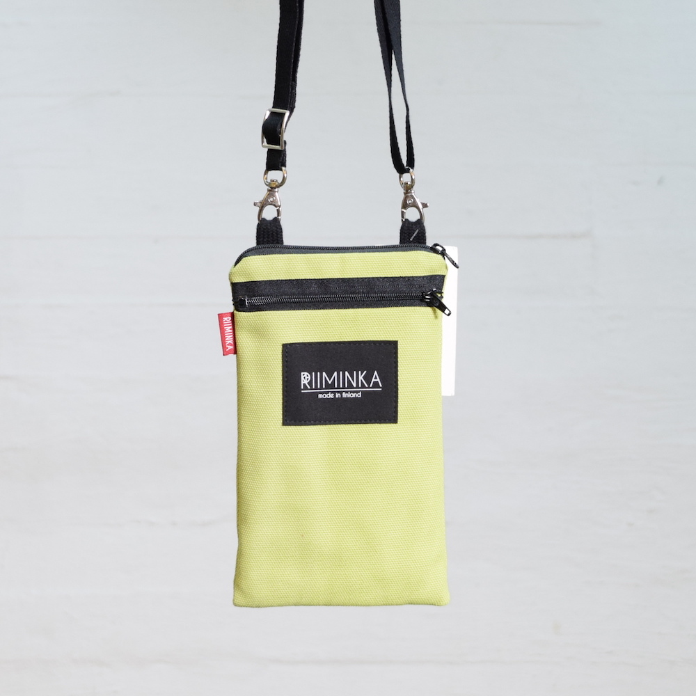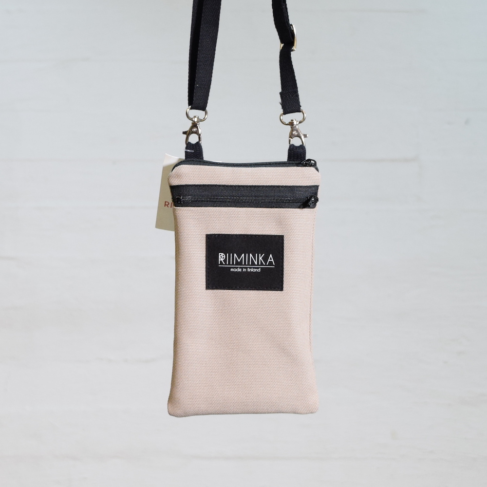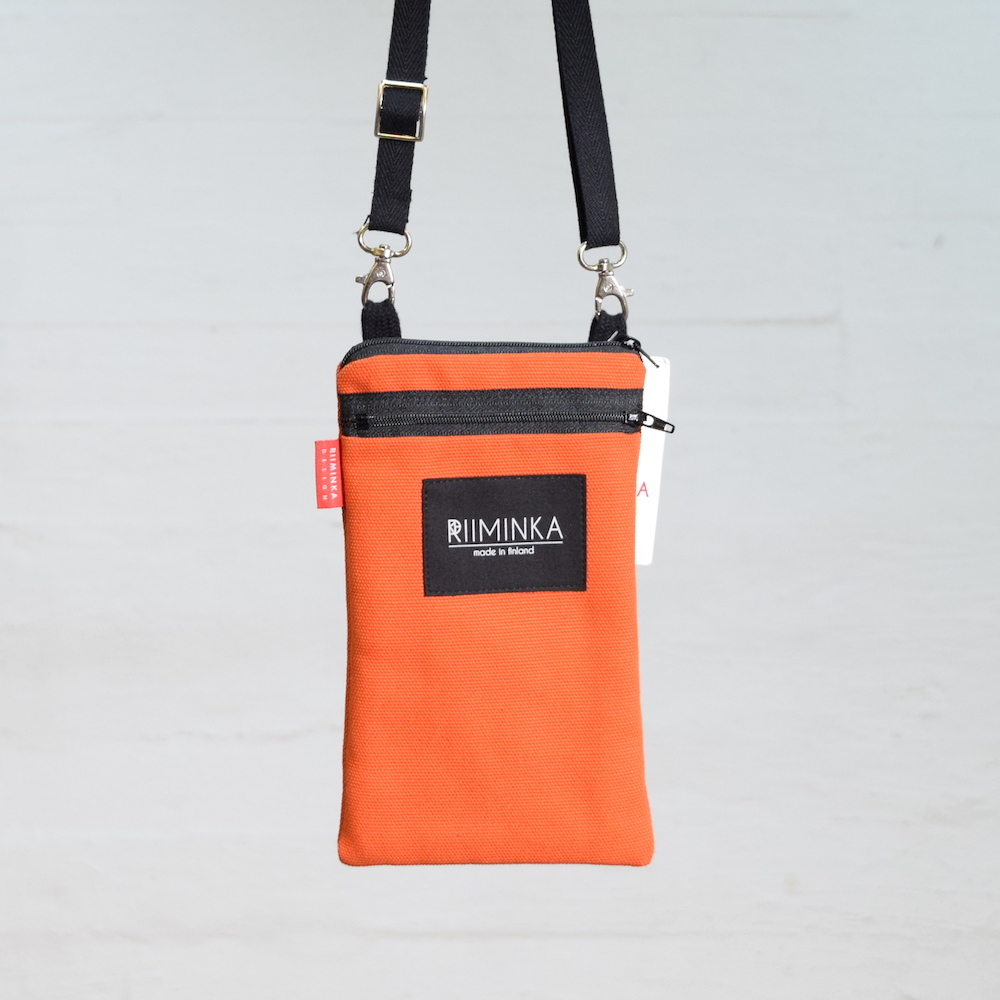 Riiminka Brick zipper closure mobile phone bag. Zipper pocket on the front side. The adjustable shoulder strap allows the bag to be used both in the neck and over the shoulder. It can hold two phones.